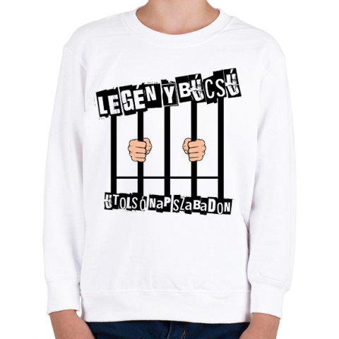 1 kép PRINTFASHION LEGÉNYBÚCSÚ UTOLSÓ NAP SZABADON - Gyerek pulóver - Fehér