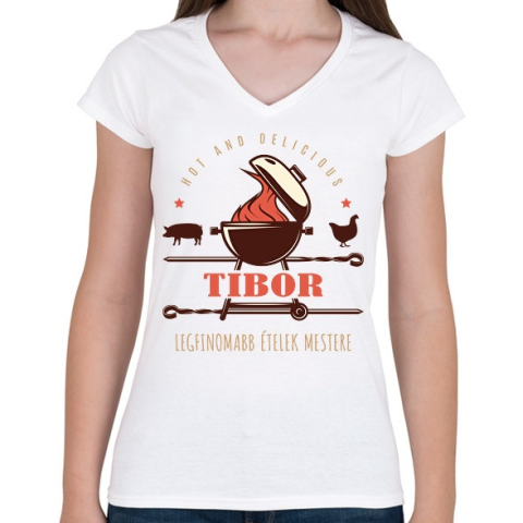1 kép PRINTFASHION Legfinomabb ételek mestere - Névvel - Női V-nyakú póló - Fehér