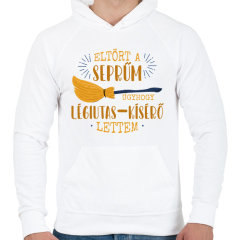1 kép PRINTFASHION Légiutas-kísérő lettem - Férfi kapucnis pulóver - Fehér