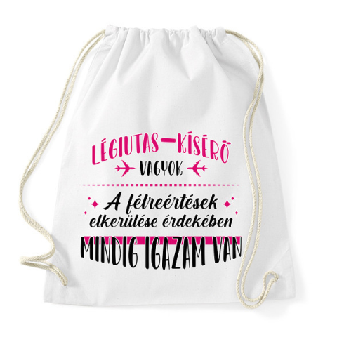 1 kép PRINTFASHION Légiutas-kísérő vagyok - Sportzsák, Tornazsák - Fehér