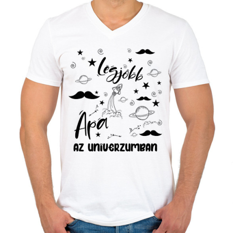 1 kép PRINTFASHION Legjobb apa az univerzumban - Férfi V-nyakú póló - Fehér