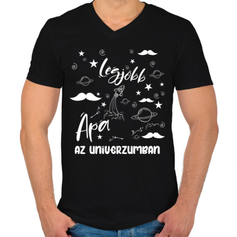 1 kép PRINTFASHION Legjobb apa az univerzumban - Férfi V-nyakú póló - Fekete