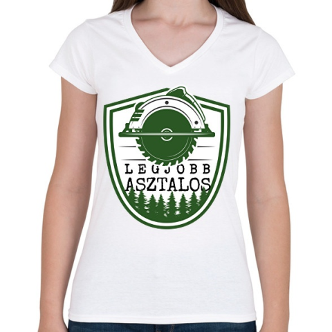 1 kép PRINTFASHION Legjobb asztalos - zöld - Női V-nyakú póló - Fehér
