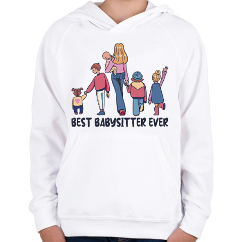 1 kép PRINTFASHION Legjobb bébiszitter - Gyerek kapucnis pulóver - Fehér