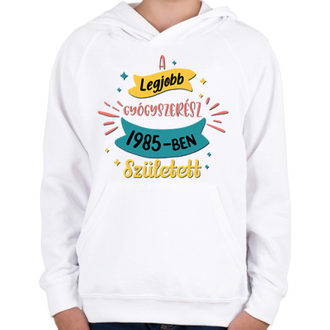 1 kép PRINTFASHION Legjobb gyógyszerész - Évszámmal - Gyerek kapucnis pulóver - Fehér