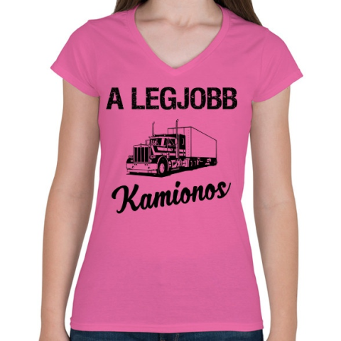 1 kép PRINTFASHION Legjobb kamionos - Női V-nyakú póló - Rózsaszín