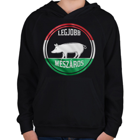 1 kép PRINTFASHION Legjobb mészáros - disznós - Gyerek kapucnis pulóver - Fekete