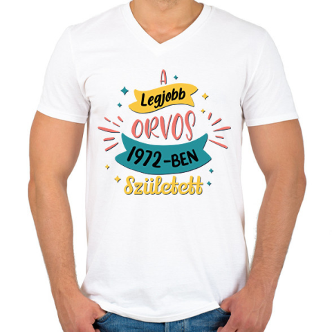 1 kép PRINTFASHION Legjobb orvos - Évszámmal - Férfi V-nyakú póló - Fehér