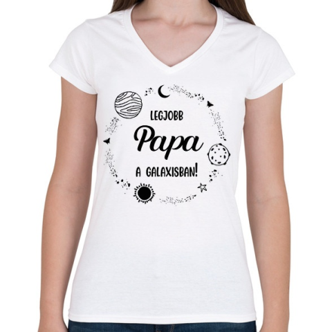1 kép PRINTFASHION Legjobb papa a galaxisban - Női V-nyakú póló - Fehér
