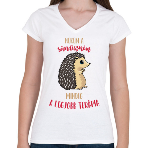 1 kép PRINTFASHION Legjobb terápia - A sündisznóm - Női V-nyakú póló - Fehér