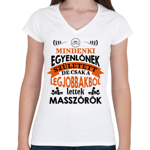 1 kép PRINTFASHION Legjobbakból lettek masszőrök - Női V-nyakú póló - Fehér
