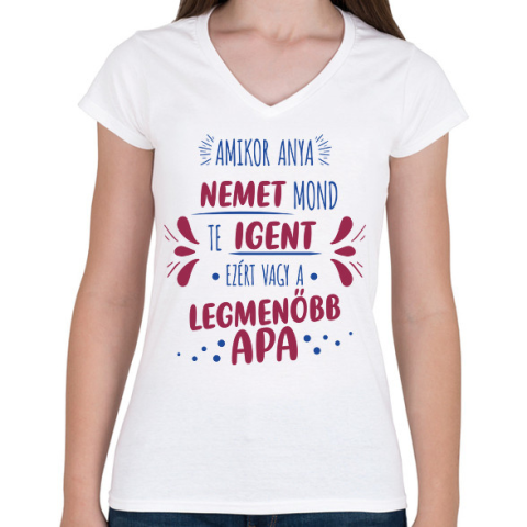 1 kép PRINTFASHION Legmenőbb apa - Női V-nyakú póló - Fehér