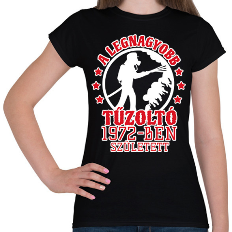 1 kép PRINTFASHION Legnagyobb tűzoltó - Évszámmal - Női póló - Fekete