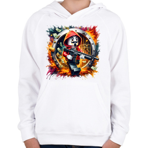 1 kép PRINTFASHION LEGO - A nagy pénzrablás - La casa de papel - Gyerek kapucnis pulóver - Fehér