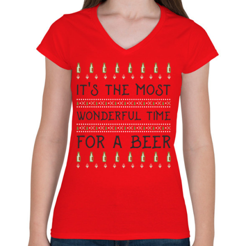 1 kép PRINTFASHION LEGSZEBB IDŐSZAK EGY SÖRRE - Női V-nyakú póló - Piros