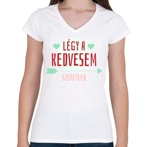 1 kép PRINTFASHION Légy a kedvesem! - Női V-nyakú póló - Fehér