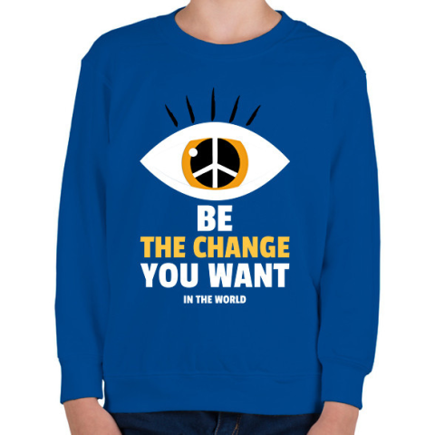 1 kép PRINTFASHION Légy a változás, amit a világban látni szeretnél - Gyerek pulóver - Királykék