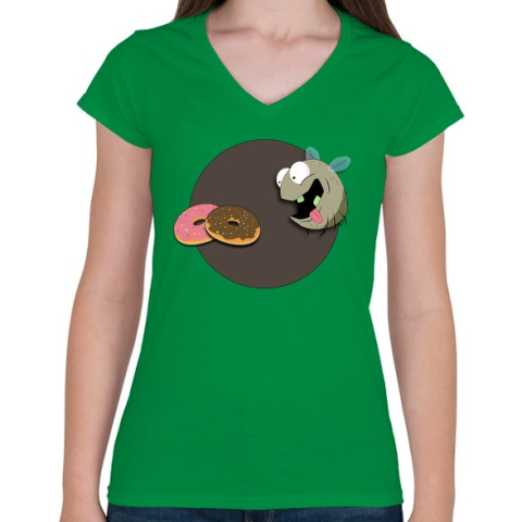 1 kép PRINTFASHION Légy és a fánk - Női V-nyakú póló - Zöld