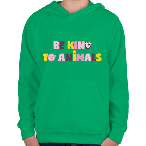 1 kép PRINTFASHION Légy kedves az állatokhoz - Gyerek kapucnis pulóver - Zöld