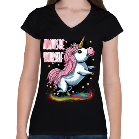 1 kép PRINTFASHION Légy önmagad - Unikornis malac - Női V-nyakú póló - Fekete