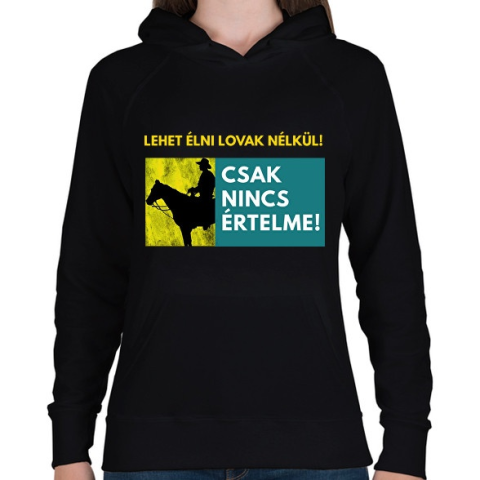 1 kép PRINTFASHION LEHET ÉLNI LOVAK NÉLKÜL IS - Női kapucnis pulóver - Fekete