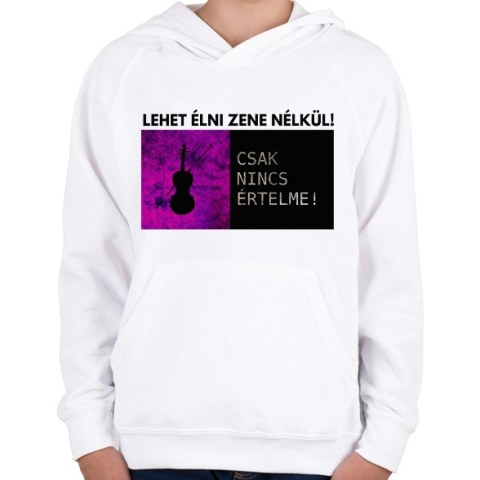 1 kép PRINTFASHION LEHET ÉLNI ZENE NÉLKÜL - Gyerek kapucnis pulóver - Fehér