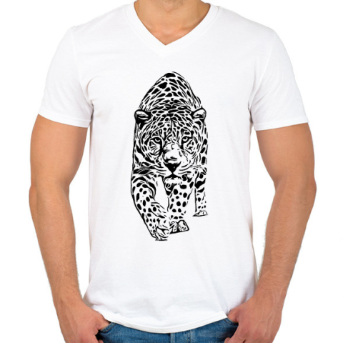 1 kép PRINTFASHION leopárd - Férfi V-nyakú póló - Fehér
