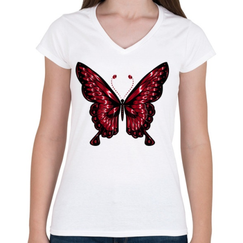 1 kép PRINTFASHION Lepke - Női V-nyakú póló - Fehér