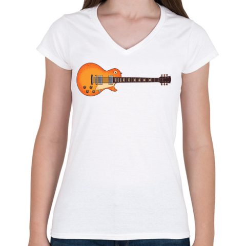 1 kép PRINTFASHION Les Paul Gitár - Női V-nyakú póló - Fehér