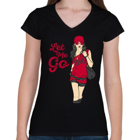 1 kép PRINTFASHION Let Me Go - Női V-nyakú póló - Fekete