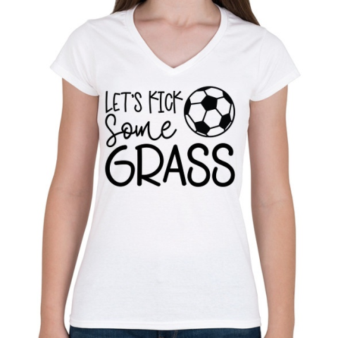 1 kép PRINTFASHION Let's kick some grass - Női V-nyakú póló - Fehér
