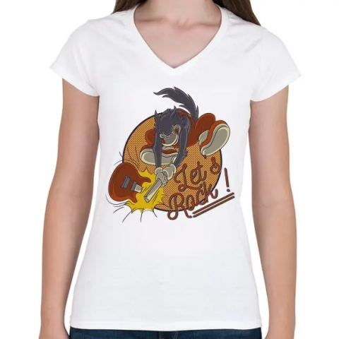 1 kép PRINTFASHION Let's rock! - Gitáros minta - Női V-nyakú póló - Fehér