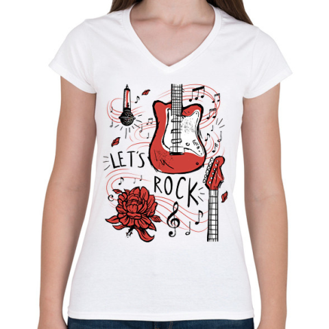 1 kép PRINTFASHION Let's rock - Női V-nyakú póló - Fehér