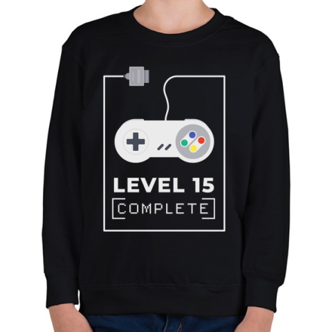 1 kép PRINTFASHION Level 15 completed - Gyerek pulóver - Fekete