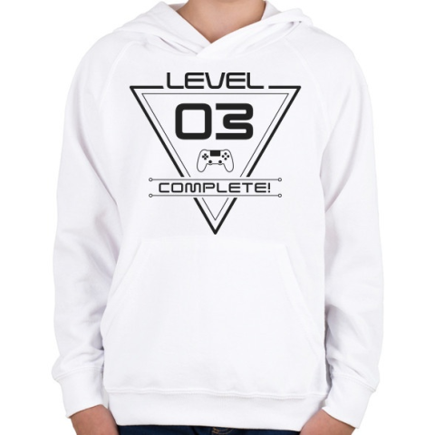 1 kép PRINTFASHION level-complete-03-gray - Gyerek kapucnis pulóver - Fehér