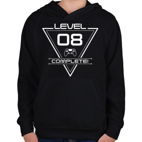 1 kép PRINTFASHION level-complete-08-white - Gyerek kapucnis pulóver - Fekete