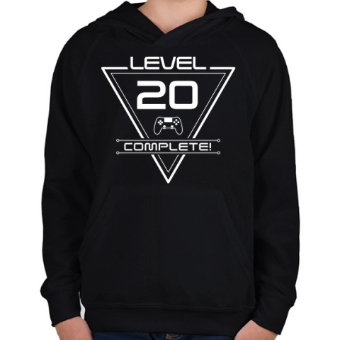 1 kép PRINTFASHION level-complete-20-white - Gyerek kapucnis pulóver - Fekete