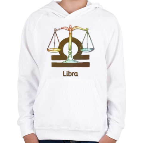 1 kép PRINTFASHION Libra színes - Gyerek kapucnis pulóver - Fehér