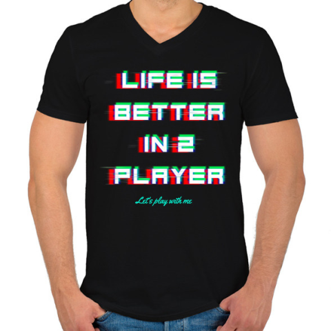 1 kép PRINTFASHION LIFE IS BETTER IN 2 PLAYER - Férfi V-nyakú póló - Fekete