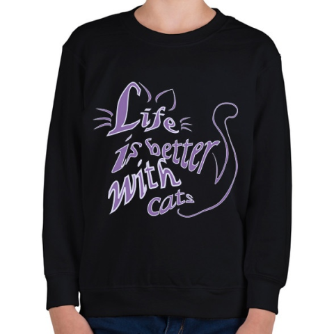 1 kép PRINTFASHION life is better with cats - Gyerek pulóver - Fekete