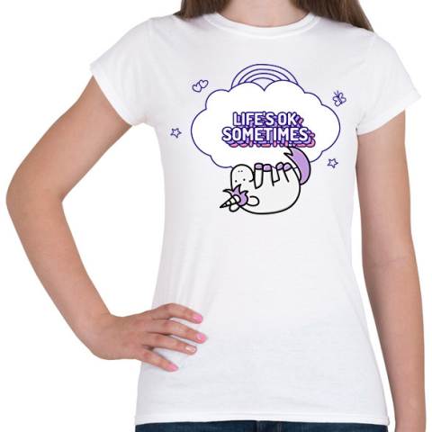 1 kép PRINTFASHION LIFE IS OK SOMETIMES - Női póló - Fehér