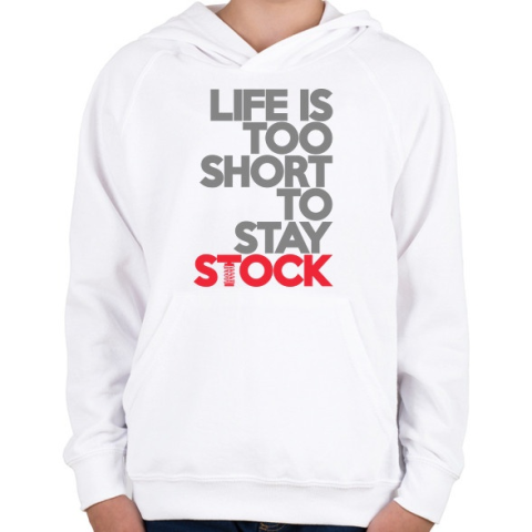 1 kép PRINTFASHION Life is too short to stay Stock - Gyerek kapucnis pulóver - Fehér