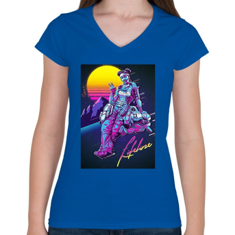 1 kép PRINTFASHION Lifeline Retro - Apex Legends - Női V-nyakú póló - Királykék