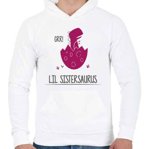 1 kép PRINTFASHION Lil Sistersaurus - Férfi kapucnis pulóver - Fehér