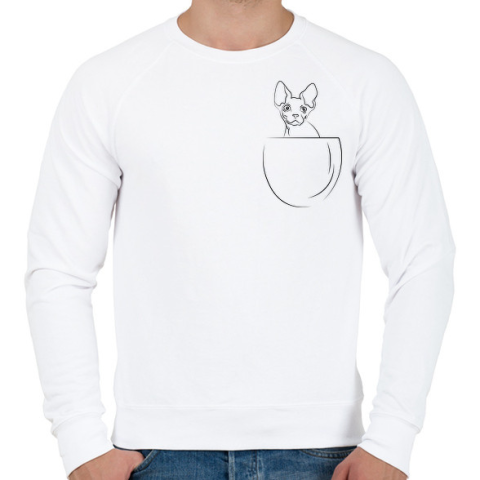 1 kép PRINTFASHION Line cat in the pocket - Férfi pulóver - Fehér