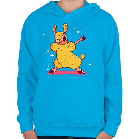 1 kép PRINTFASHION Llama Dabbing - Gyerek kapucnis pulóver - Azúrkék