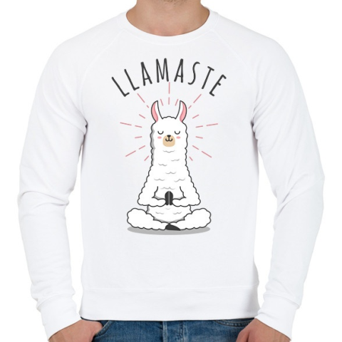 1 kép PRINTFASHION Llamaste yoga - Férfi pulóver - Fehér