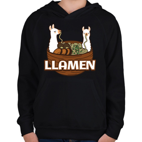 1 kép PRINTFASHION Llamen - Gyerek kapucnis pulóver - Fekete