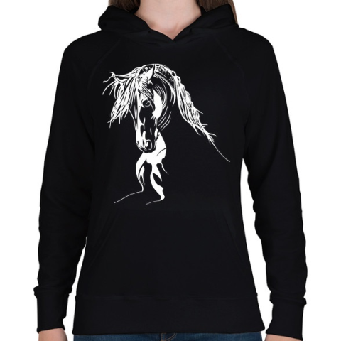 1 kép PRINTFASHION Ló arc - Női kapucnis pulóver - Fekete