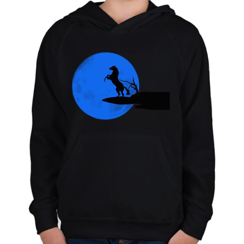 1 kép PRINTFASHION ló és a kék hold - Gyerek kapucnis pulóver - Fekete